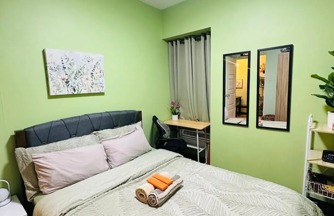ベッドルーム1室のA Cozy Abode At Visayas Ave Condo Unit 1-Br Not A Studio!! マニラ市はテラスがあり、11th ワールド・スカウト・ジャンボリー・メモリアル・ロトンダから3.9キロメートルに位置しています。 ビジネスやレジャーのお客様のニーズに合わせて、WiFiを提供しています。